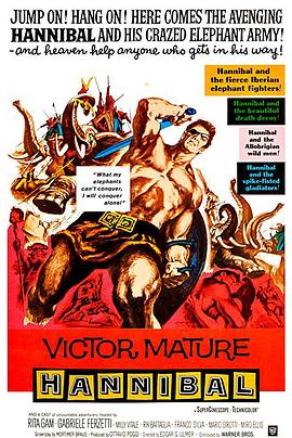 After making his historic crossing of the Alps with elephants transporting supplies and troops, Hannibal marches on Rome in a war of revenge. During his advance, he captures Sylvia, the niece of Roman Senator Fabius Maximus but, instead of holding her prisoner, he shows her his powerful army and herds of elephants, then sets her free. He is sure she will report what she has seen to his Roman enemies. Hannibal defeats the Romans at the battle of Trebbia and sends a message to Sylvia that he is marching on Rome. Sylvia succumbs to her love of Hannibal and they have a rendezvous, but are surprised by a Roman patrol. Hannibal escapes and Sylvia is confined to the temple of the Vesta Goddess. She escapes and meets Hannibal again. Hannibal orders his brother Hasdrubal to Carthage to take over command of the reinforcements preparing to join Hannibal. Hannibals wife Danila arrives from Carthage unexpectedly and Sylvia runs away and returns to Rome... VCI is very pleased to present this epic motion picture, which has been mastered from the original negatives and presented in all its widescreen glory for the first time on home video! Love and war intertwine in this fanciful adaptation of history. The brilliant Carthaginian general, Hannibal (Victor Mature) despises Rome. Fueled by vengeance, he drives his army of elephants through the treacherous, frozen Alps into Italy, crushing anyone who dared to oppose him. As a strategy to break the morale of his enemies, Hannibal captures the beautiful Sylvia of Rome (Rita Gam) so she may see the might of his army and spread the news of impending doom to her people. However, a love grows between the two that will eventually be his undoing. This big-budget spectacle produced by Warner Bros. was shot in Technicolor and SuperCinescope and literally features a cast of thousands... over 4,000 foot-soldiers, 1,500 horsemen, 45 elephants and a vast assortment of war machines were employed in the historic battle of Cannae alone. Love and war intertwine in this fanciful adaptation of history. The brilliant Carthaginian general, Hannibal (Victor Mature) despises Rome. Fueled by vengeance, he drives his army of elephants through the treacherous, frozen Alps into Italy, crushing anyone who dared to oppose him. As a strategy to break the morale of his enemies, Hannibal captures the beautiful Sylvia of Rome (Rita Gam) so she may see the might of his army and spread the news of impending doom to her people. However, a love grows between the two that will eventually be his undoing. This big-budget spectacle produced by Warner Bros. was shot in Technicolor and SuperCinescope and literally features a cast of thousands over 4,000 foot-soldiers, 1,500 horsemen, 45 elephants and a vast assortment of war machines were employed in the historic battle of Cannae alone. 一句话评论 Jump on! Hang on! Here comes the avenging Hannibal and his crazed elephant army! Hannibal and His Fantastic Elephant Army That Clobbered Half the World!