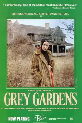 灰色花园(Grey Gardens)以七个月的时间贴身记录了杰奎琳肯尼迪一对远亲母女纠葛的关系,导演拍摄两人喂猫、喂浣熊、吃饭、回忆往事和彼此埋怨。观众对她们的实际背景所知不多,却可以透过影片内容,极生动地见识到这两人的性格及互动,所谓真实电影的长处与局限,在本片中皆表露无遗……