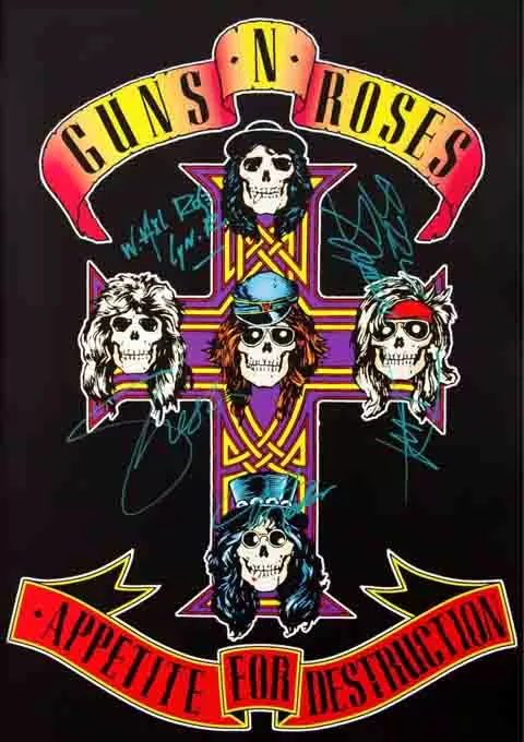 Guns N’ Roses 的第一张专辑《Appetite for Destruction》是对80年代末期传统Hard Rock 的一次肮脏的挑衅,其实这张专集在1986年就开始制作,只所以用了将近两年时间,主要是SLASH的毒瘾太大,导致录制工作延【资源囤-ZiYuanTun.Com】。当时正是 Bon Jovi, Def Leppard 这些 Pop Metal 乐队最走红的时候,带有 Punk 气质的 Guns N’ Roses 推出的首张专辑是带有冒险性的,尽管专辑的最终销量超过 Bon Jovi 的任何一张唱片。表面上,Guns N’ Roses 的首张专辑与他们的许多先辈一样,是一张关于性、酗酒、毒品和 Rock & Roll 的唱片,从这张专集里可以听出他们的音乐最大的影响者就是老牌重摇滚乐队 Aerosmith ,是传统点带些老BLUES的重摇滚,其中还掺杂着不少原始朋克的野蛮粗糙,而不是当时风头正劲的 Thrash Metal;同时歌曲的内容并不沉重,没什么政治啊,死亡啊等等骇人听闻的东西,他们把青少年对于社会的不满,无知的迷茫,无端的愤怒心声表达的淋漓尽致,这也是他们为什么能迅速成为众多青少年乐迷的喜爱的原因