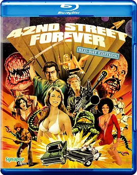 永远的42街系列是专门收录和介绍上世纪60-80年代畅销的磨坊电影的录像合集,自2005年起到目前已发行5卷磨坊电影合集,和一卷X级电影合集,该部蓝光是一个磨坊电影的预告片集合,包含了90部老旧电影的影院预告短片,所涉及的电影风格可谓包罗万象,经过高质量的修复后,你可以 在你的蓝光播放器上欣赏到来自世界各地各种类型的磨坊电影:天体色情,血腥恐怖,虚假科幻,残酷记录,女子乱斗,港式武打,纳粹实验,性欲剥削,强暴复仇,公路追逐,药品依赖,女子监狱...... 目录: 1. Black Samson 2. Savage! 3. Kenner 4. The Guy From Harlem 5. Welcome Home, Brother Charles 6. Boss Nigger 7. Honky 8. Sugar Hill 9. Rolling Thunder 10. Act of Vengeance 11. Ms. 45 12. They Call Her One Eye 13. Ginger 14. Savage Sisters 15. Chained Heat 16. Delinquent Schoolgirls 17. The Pom Pom Girls 18. The Teasers Go to Paris 19. The Teacher 20. College Girls 21. Street Girls 22. The Babysitter 23. Teenage Mother 24. I, A Mother 25. When Women Had Tails 26. The Curious Female 27. The Tale of the Dean's Wife 28. The Minx 29. The Centerfold Girls 30. The Depraved 31. Invitation to Ruin 32. Helga 33. The Sun, the Place and the Girls 34. Fairytales 35. Flesh Gordon 36. Starcrash 37. Dark Star 38. The Raiders of Atlantis 39. Matango 40. The Green Slime 41. They Came from Beyond Space 42. The Deadly Spawn 43. The Dark 44. The Evil 45. The Evictors 46. The Undertaker and His Pals 47. The Devil's Nightmare 48. Deadly Blessing 49. Rabid 50. Eye of the Cat 51. Mark of the Witch 52. I Dismember Mama/The Blood Splattered Bride 53. Women and Bloody Terror/Night of Bloody Horror 54. Dr. Butcher M.D. 55. The Grim Reaper 56. Dr. Tarr's Torture Dungeon 57. Wicked Wicked 58. The Flesh and Blood Show 59. The 3 Dimensions of Greta 60. Hard Candy 61. Panorama Blue 62. Italian Stallion 63. Maid in Sweden 64. Pornography in Denmark 65. Secret Africa 66. Shocking Asia 67. Taboos of the World 68. Chappaqua 69. Salo, or the 120 Days of Sodom 70. The 44 Specialist 71. The Bullet Machine 72. Death Drive 73. Spy in Your Wife 74. Kiss the Girls and Make Them Die 75. The Last of Secret Angels 76. The Crippled Master 77. Shogun Assassin 78. SuperManChu 79. Born Losers 80. Hells Angles on Wheels 81. Devil's Angels 82. The Pink Angles 83. Werewolves on Wheels 84. Dixie Dynamite 85. Mr. Billion 86. Super Fuzz 87. Sunset Cove 88. Van Nays Blvd. 89. Skatetown U.S.A.